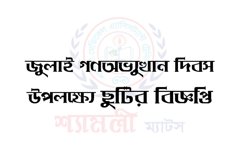 “জুলাই গণঅভ্যুত্থান দিবস” ‍উপলক্ষ্যে ছুটির বিজ্ঞপ্তি।
