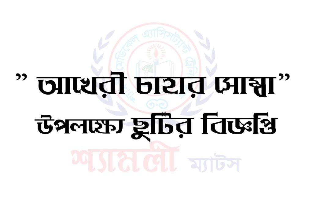 আখেরী চাহার সোম্বা উপলক্ষ্যে ছুটির বিজ্ঞপ্তি।